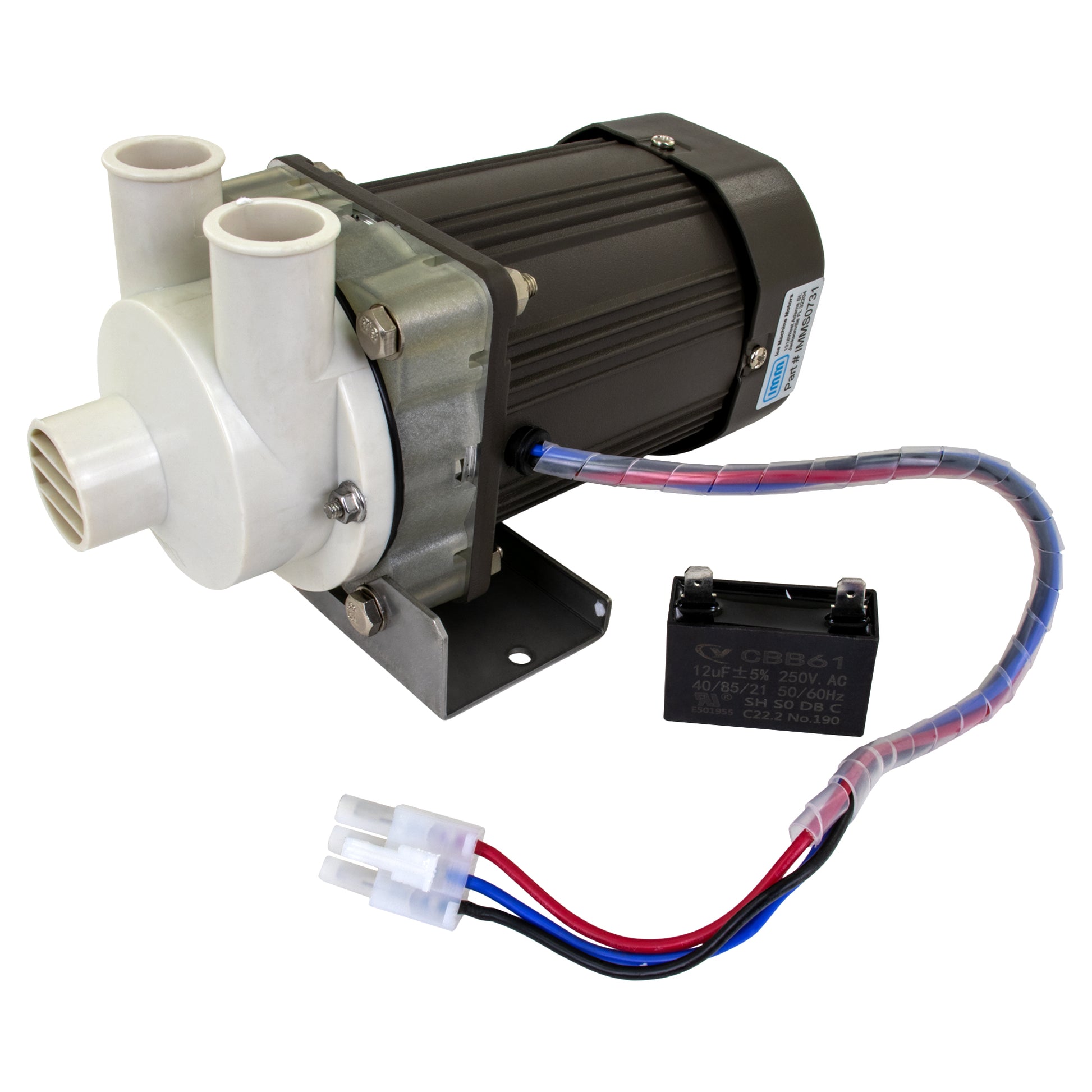 IMM is the industry leader in motor and pump replacements for Hoshizaki ice machines. The newest addition to the IMM line of motors is the IMM S0731 replacement pump motor, designed to provide a fast, reliable, and easy solution for maintenance and repairs. Unlike OEM motors, the IMM S0731 comes with a 14-inch wire assembly with plug pre-installed and a mounting plate already attached, making installation truly plug-and-play. When time is critical, IMM delivers the quickest replacement solution for commercial ice machines, saving both time and effort. The IMM S0731 motor Replacement is compatible with Hoshizaki part numbers S-0731 and 900-SD. It works with Hoshizaki ice machine models KM-1300MAH and KM-1340MRH, providing a dependable solution to quickly restore your ice machine’s performance. Built with high-quality, durable materials, this motor delivers long-lasting performance in demanding commercial environments while maintaining steady, reliable ice production. Installation is simple and secure using the included mounting plate and pre-attached 14-inch wire with plug. This motor replacement is ideal for routine servicing, emergency repairs, or keeping as a spare part to reduce downtime. Compact and efficient, the IMM S0731 motor measures 8 inches in length (20.32 cm), 13 inches in width (33.02 cm), 7 inches in height (17.78 cm), and weighs 7.6 lbs (3447 g), making it easy to handle and install. Backed by a 120-day warranty, the IMM S0731 replacement pump motor offers a cost-effective, high-quality solution to keep your Hoshizaki ice machines operating at peak efficiency while ensuring uninterrupted ice production.